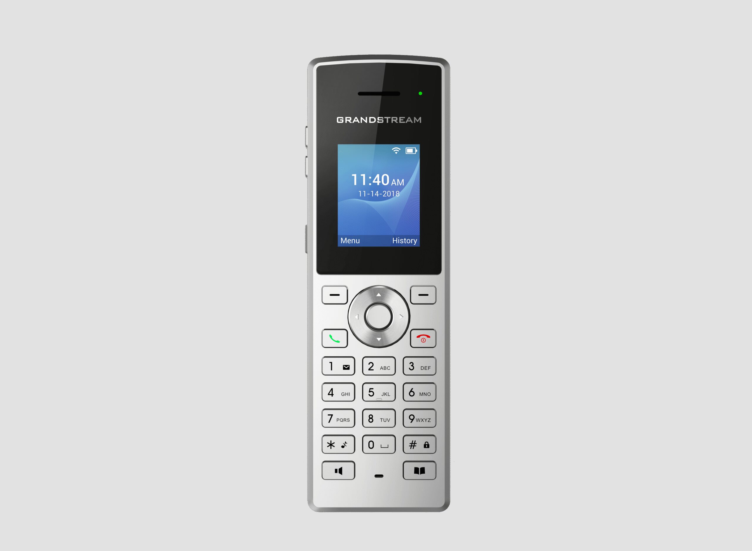 The Grandstream WP810 is a compact, dual-band Wi-Fi IP phone designed for mobile communication across sectors such as retail, logistics, healthcare, and security. It supports two SIP accounts and two lines, offering flexible voice communication. Dual microphones with Acoustic Echo Cancellation (AEC) and Noise Shield Technology ensure HD audio quality. A 1500mAh battery delivers up to six hours of talk time and 120 hours of standby, supporting all-day use. With roaming support, a configurable push-to-talk button, and centralised provisioning via Grandstream’s GDMS platform, the WP810 is a reliable, easy-to-manage communication tool.