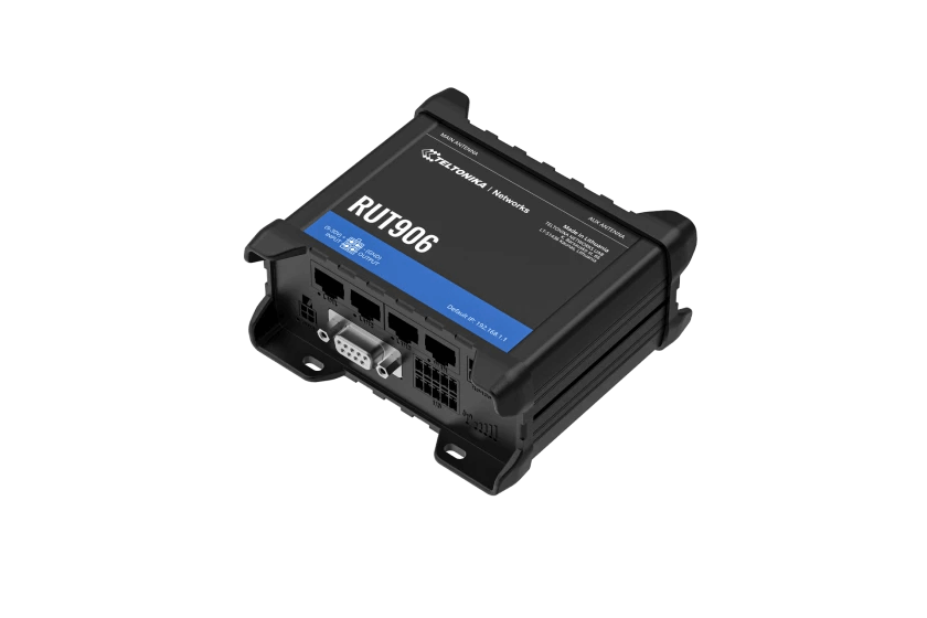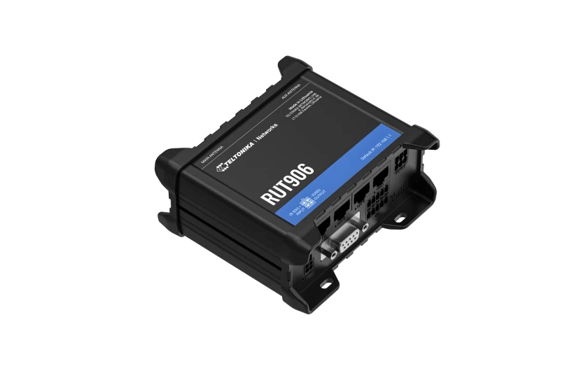 The Teltonika RUT906 is a rugged industrial 4G router designed for IoT applications, offering reliable and secure connectivity. It supports RS232 and RS485 serial interfaces, MQTT, BACnet, OPC UA, I/Os, and Ethernet, making it ideal for industrial automation and remote monitoring. Operating on 4G LTE (Cat 4), 3G, and 2G networks, it ensures stable data transmission. With Dual SIM, auto-failover, and backup WAN, it provides uninterrupted connectivity for mission-critical operations. Additionally, the RUT906 features GNSS, NTRIP support, and time synchronisation, enhancing its suitability for precision tracking and industrial IoT deployments.