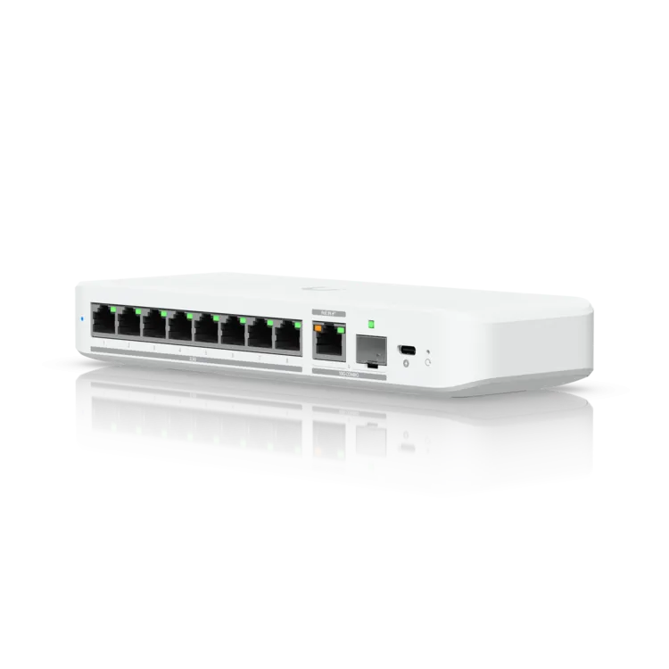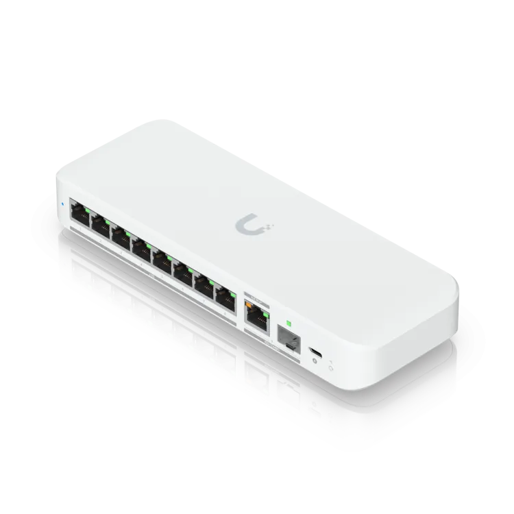The Ubiquiti UniFi USW-Flex-2.5G-8 is a managed Layer 2 switch equipped with eight 2.5GbE RJ45 ports. Designed for high-performance networking, it integrates fully with the UniFi Network application for centralised configuration, monitoring, and management. The 2.5GbE ports are ideal for connecting bandwidth-intensive devices like Wi-Fi 6/7 access points, servers, and workstations, significantly improving data transfer speeds and reducing network latency. Its versatile design makes it suitable for desktop or mounted deployment in business or home lab environments. Upgrade your network infrastructure for faster, more reliable wired connections with this multi-gigabit UniFi switch.